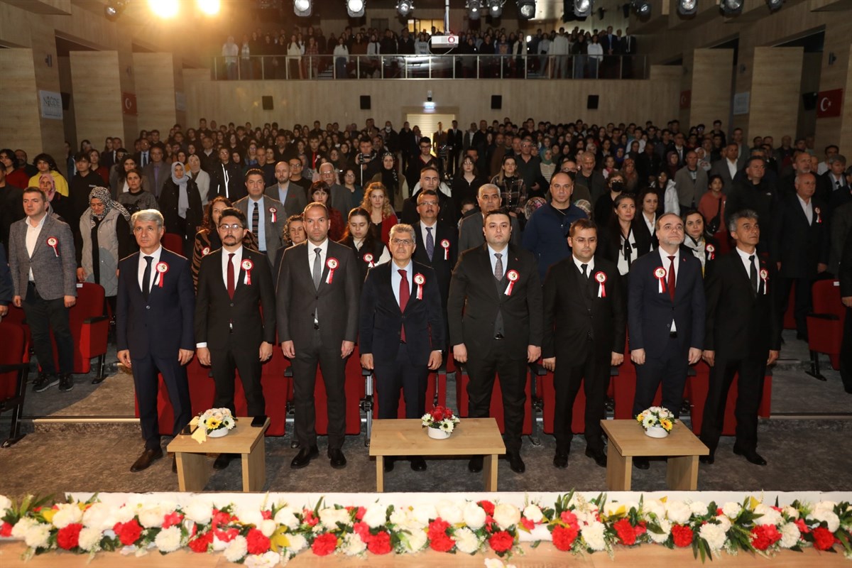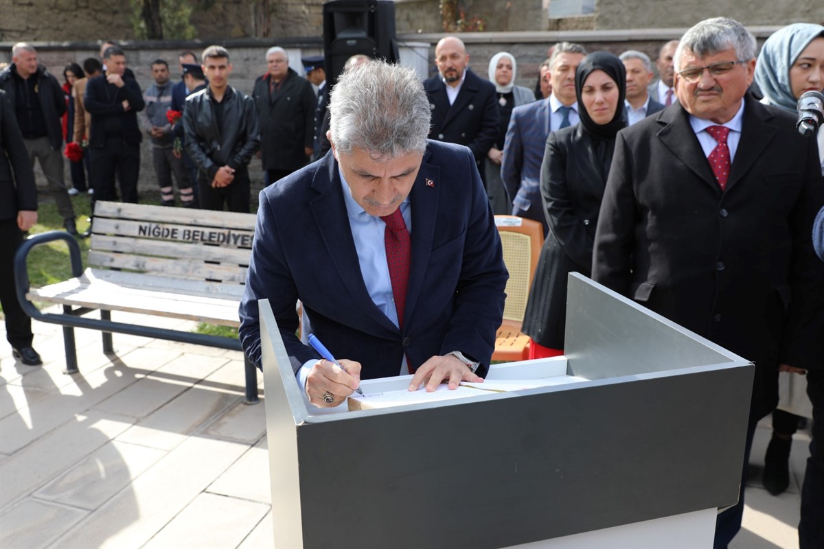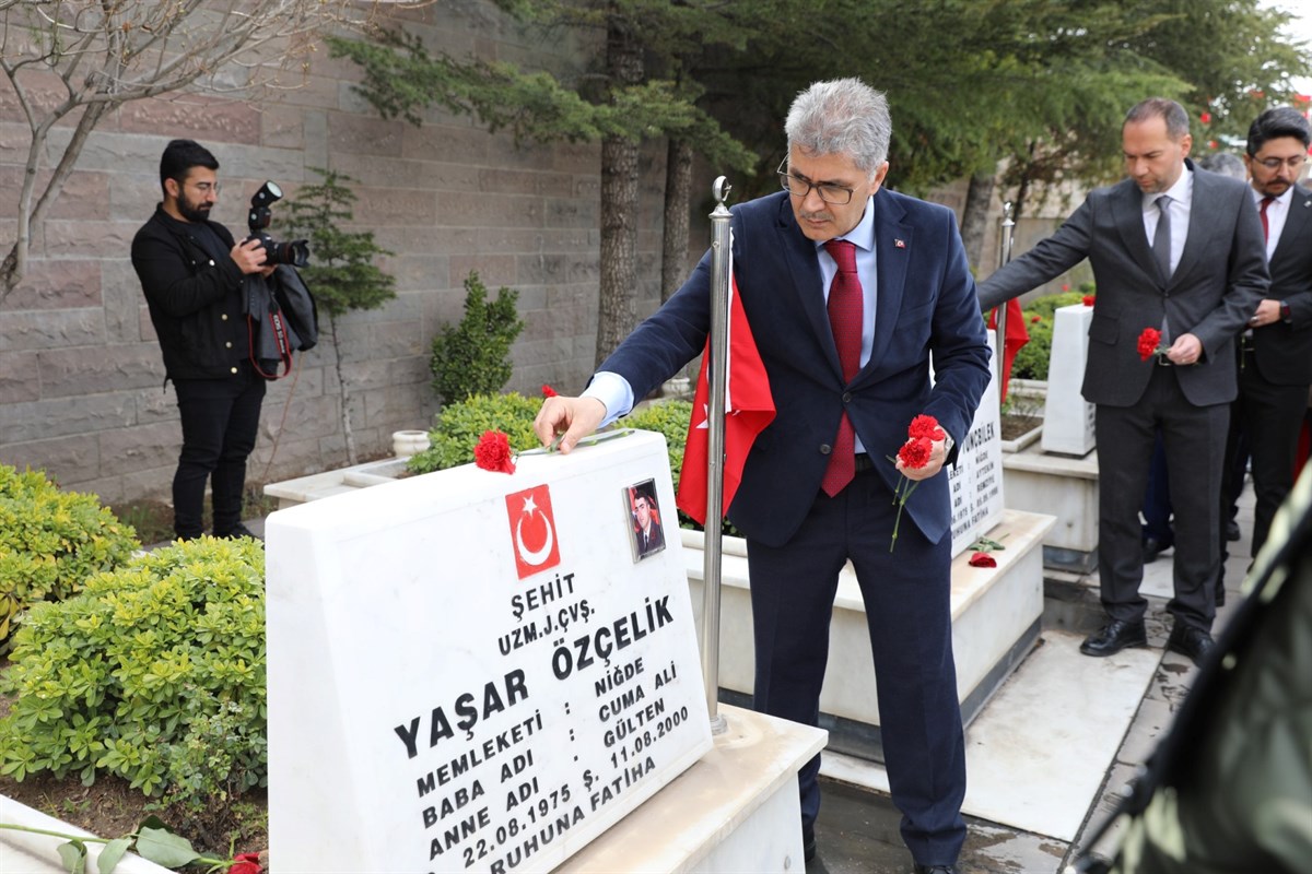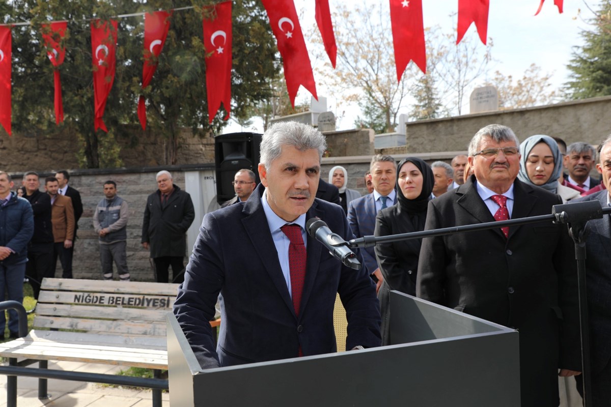 Valimiz Sayın Cahit ÇELİK, Niğde Belediye Başkanı Sayın Emrah ÖZDEMİR ve Şehit Aileleri Yardımlaşma ve Dayanışma Derneği Başkanı Ömer DEMİR’in Şehitlik Anıtına Çelenk sunumuyla başlayan tören saygı duruşunda bulunulması ve İstiklal Marşımızın okunması ile devam etti.