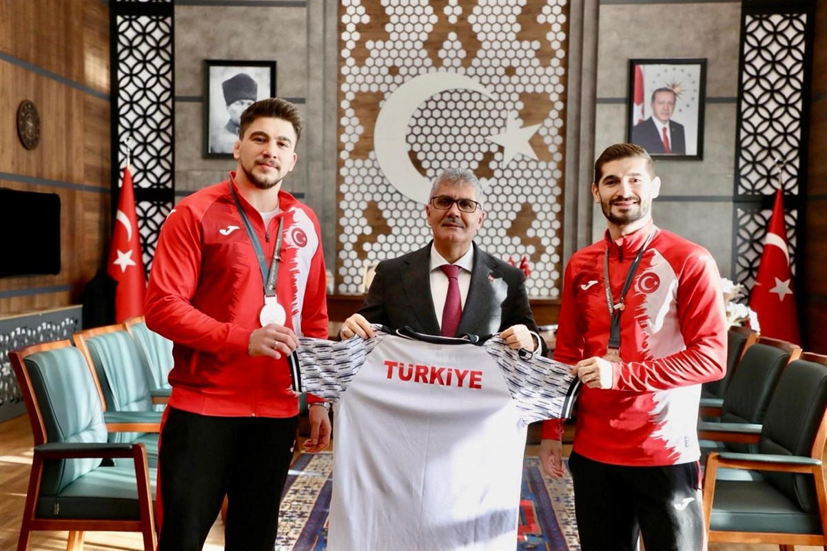 Ulusal ve uluslararası alanda elde ettikleri derecelerle Türk güreşinin öne çıkan isimleri arasında yer alan Niğdeli millî sporcularımız Sayın Ahmet Talha KACUR, grekoromen güreş 87 kilogramda; Sayın Kadir KUŞ ise grekoromen güreş 67 kilogramda, 16–25 Kasım 2025 tarihleri arasında Japonya’nın Tokyo kentinde düzenlenen Deaflympics Olimpiyat Oyunları’nda kazandıkları bronz madalyaların ardından Valimiz Sayın Cahit ÇELİK’i makamında ziyaret etti.